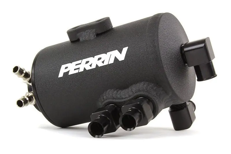 The PERRIN Air Oil Separator prevents oil from entering the intake by capturing it from the crankcase vents. This reduces carbon-up, improves intercooler efficiency, and lowers the risk of performance degrading detonation.
