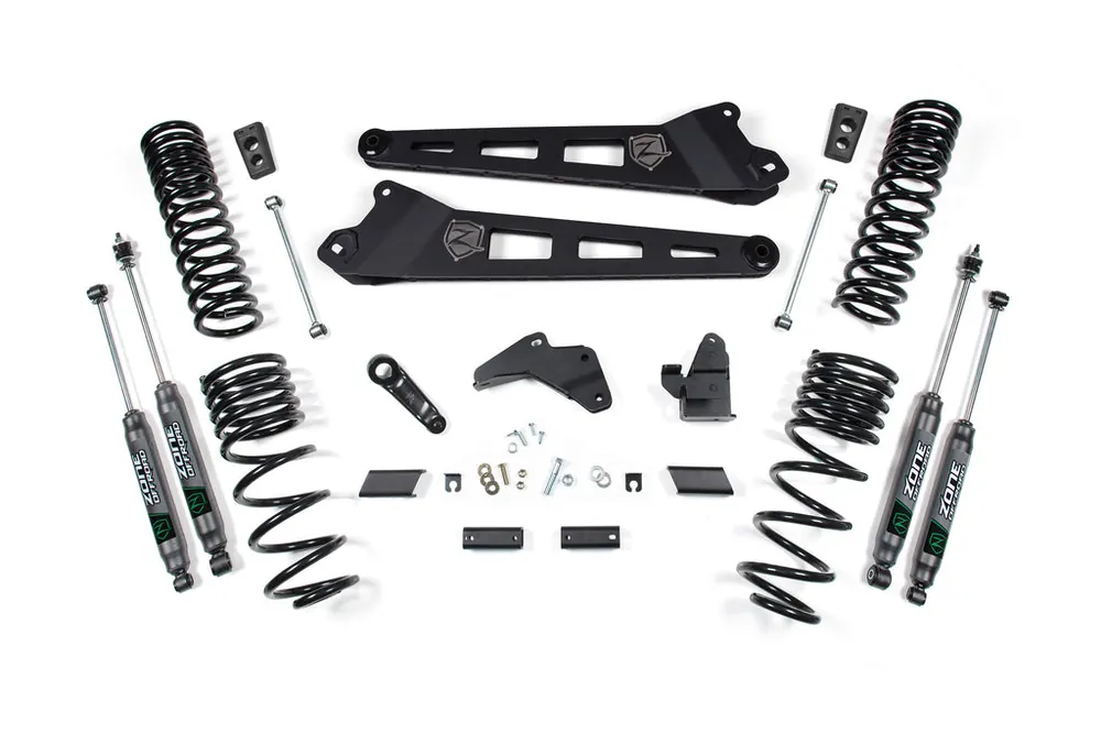 Take your RAM 2500 to new heights with this 5.5″ lift kit from Zone Offroad. Kits include everything needed from front/rear coil springs and stout radius arms to steering correction and rear lift to level the stance. Get the look, performance, and capability your truck deserves with clearance for up to 37″ tires.