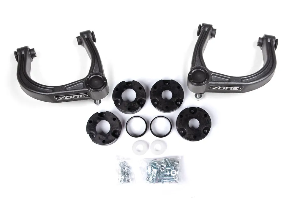 Take your 2022-2025 Hoss 3.0 equipped Bronco to new heights with our Zone 2.25” suspension system. This system fits both 2-door and 4-door models. Your Hoss 3.0 suspension features position sensitive Internal Bypass Shocks (IBP). When making suspension modifications, it is very important to keep shock position in mind to take advantage of these amazing FOX shocks. Being part of the FOX family, Zone Off-road engineers understand this and have added both a top spacer, and a Perch collar to this system which maximizes the lift height for the Hoss 3.0 system without negatively affecting the function of the position sensitive shocks, and levels the stance front to rear. This system also includes the high strength Adventure Series upper control arms. Designed for use on lifted setups these arms allow proper alignment and correct geometry throughout the entire range of motion while improving strength, and great looks. The arms come ready to install right out of the box with rubber bushings and HD ball joints preinstalled. Designed for easy installation right here in the USA, this system also qualifies for our Factory Protection Plus warranty program, allowing you to wheel and modify your vehicle with confidence.