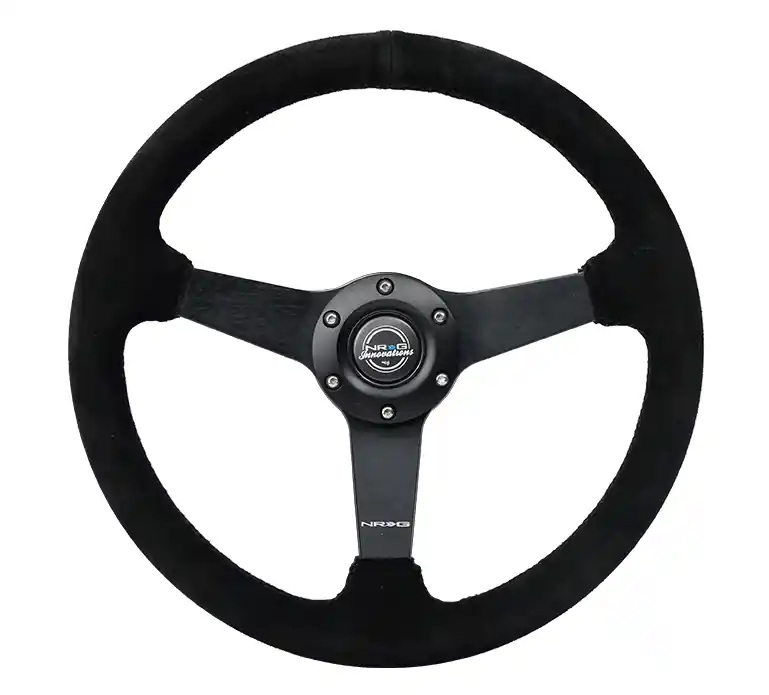 Professional Grade NRG Innovations 350MM Flat Steering Wheel w/ Black Center, Black Stitching and Black Suede Grip
