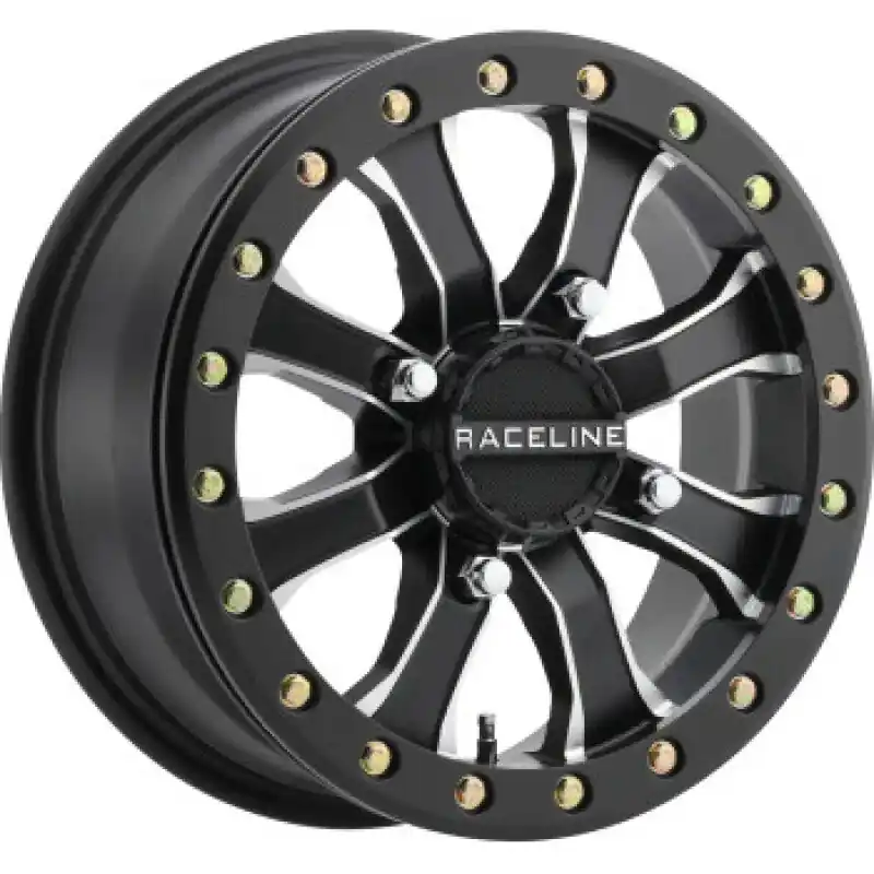 Raceline A71MB Mamba 14x6in/4×110 BP/5+1 40mm Offset/80.3mm Bore – Black & Machined Beadlock Wheel