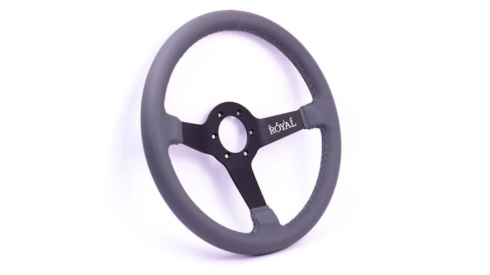 Reduced Price Grip Royal Brute Macbeth 350mm Deep Dish Steering Wheel w/ Grey Leather Grip, and Grey Stitching