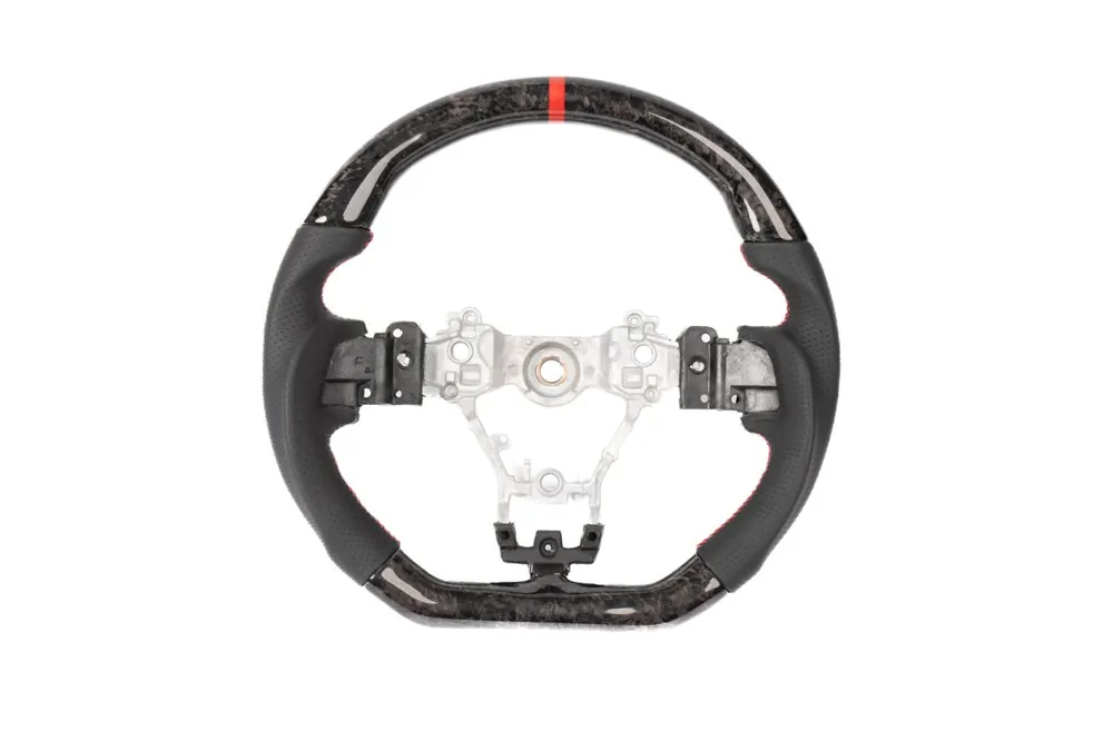Reduced Price Molded Innovations Forged Carbon Fiber Steering Wheel w/ Perforated Leather Grip, Red Stripe and Red Stitching 2015-2021 WRX / 2015-2021 STI