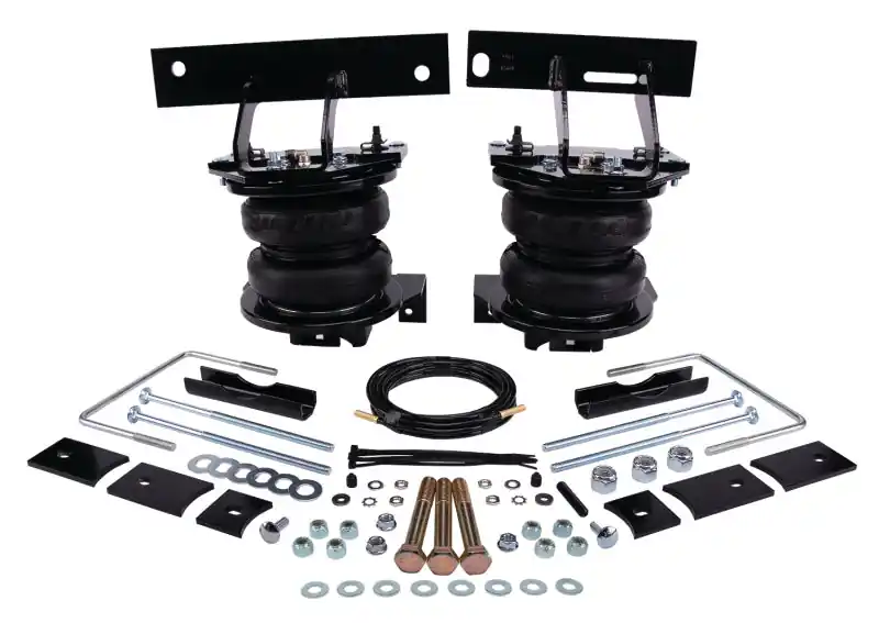 The LoadLifter 7500 XL Ultimate offers support for the heaviest tows with an internal jounce bumper, absorbing shock for the smoothest ride. Air Lift’s fully adjustable, industry-leading air springs are the perfect upgrade for your vehicle, eliminating any issues you might face when towing and hauling. Installing Air Lift’s LoadLifter 7500 XL Ultimate makes towing and hauling with select Ford F-250 and F-350, single rear wheel, and four-wheel drive a breeze. Adding this air spring kit eliminates many issues associated with towing and hauling, like squat, bottoming out, trailer sway and body roll. The air spring kit is designed with an internal jounce bumper that allows the springs to run safely with zero air pressure. The LoadLifter 7500 XL Ultimate and its design offer 7,500 lbs. of load-leveling capacity, absorbs shock, and are fully adjustable for when you are, or aren’t, hauling and towing. The closed-cell urethane foam jounce bumper inside the air spring provides a cushion of air that absorbs shock, eliminates harsh jarring on rough roads, and protects vehicles carrying heavy loads. An Air Lift exclusive, the kit features upper and lower roll plates for added protection. All end caps are made with an ultra-high-strength nylon composite formula, strong as steel but much lighter and corrosion-proof. The air springs are built like tires, reinforced with 2-ply fabric for maximum strength. With the added stability that air springs provide, you can haul safely, knowing that you have optimal braking and steering control. The LoadLifter 7500 XL Ultimate has up to 20% more air spring volume when compared to Air Lift’s LoadLifter 5000 series. The LoadLifter 7500 XL Ultimate’s air springs are maintenance-free, can run safely on zero air pressure, and are fully adjustable from 5-100 PSI for precise control. Do not exceed the vehicle’s gross vehicle weight rating (GVWR).