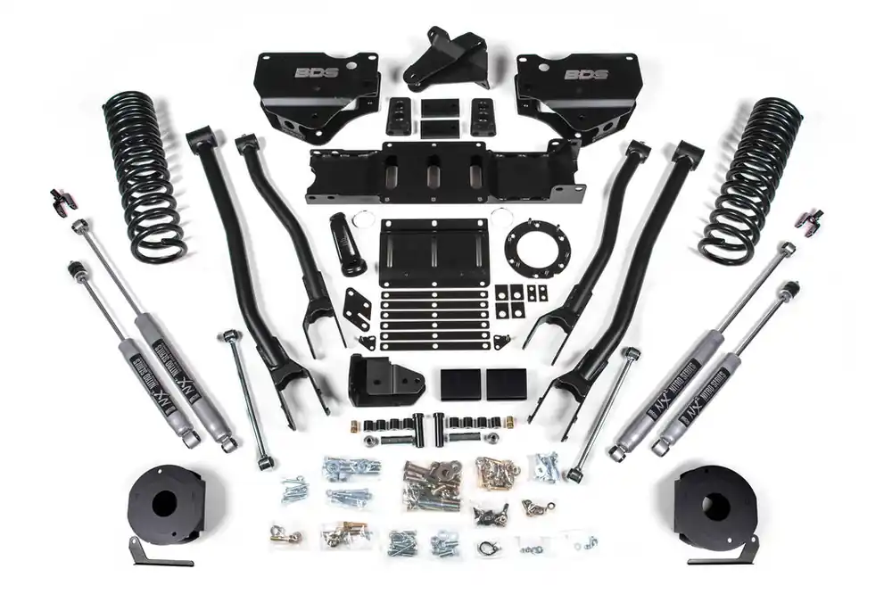 Built to outperform, BDS Suspension engineered a 6-inch lift kit with 4-Link conversion for your 2019-2024 RAM 2500 diesel powered truck that will surely impress. Works on trucks with factory rear air ride option. Designed to improve stance, performance, and capability, this kit includes everything necessary to set your truck up right with clearance for up to 37″ tires.