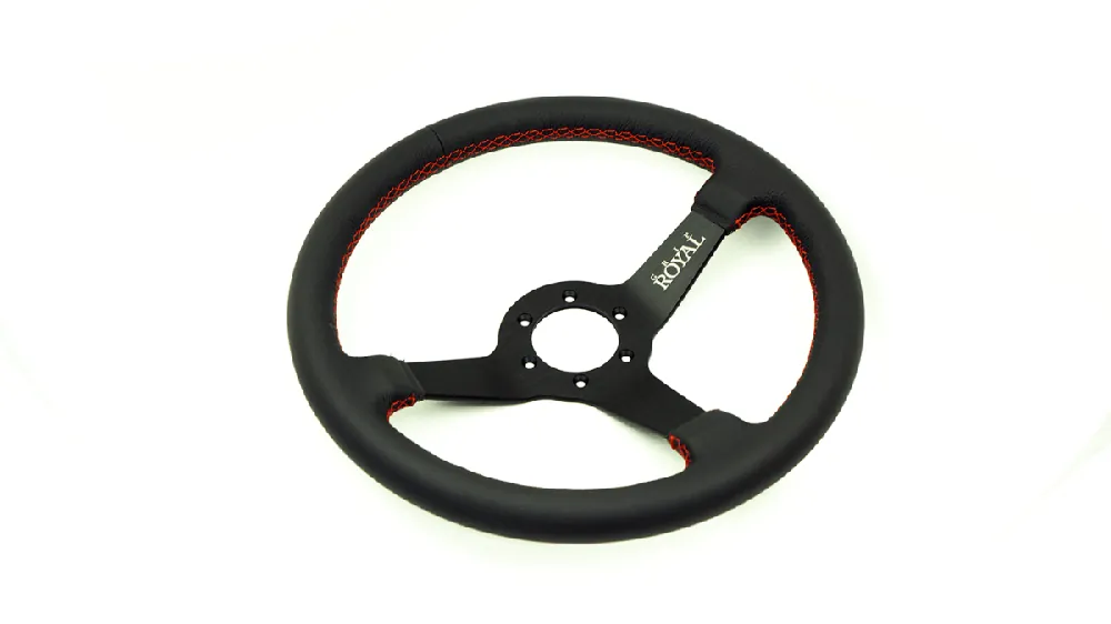Seasonal Sale Grip Royal Brute 350mm Deep Dish Steering Wheel w/ Black Leather Grip, and Red Stitching