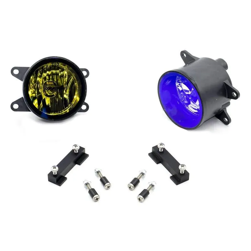 SMY Fog Light Kit is a true upgrade for anyone that has a factory installed fog lights. Once installed you will notice more light output then your factory fog lights. The glass lens has a plasma ion coating to give it the blue hue and the insides are gold anodized. The H11 bulbs are white 12v 55w. You will notice a yellowish light output. Yellow is the most visible light to the human eye. These lights are manufactured by IPF and the brackets are designed and made by SMY Performance here in the USA. Also note the fact that due to these lights not having baskets in front of the bulbs the light output is far greater than OEM.
