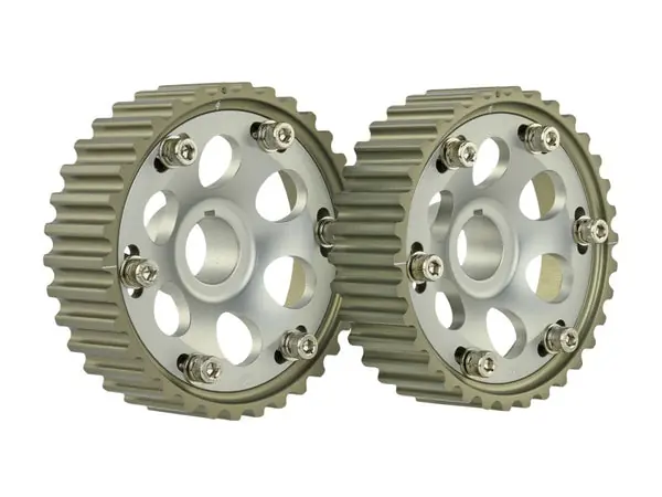 An engine’s camshafts must be set at their proper positions relative to the crankshaft in order to maximize horsepower. Pro Series Cam Gears for Hondas B-series and H23A1 engines enable serious tuners to optimize horsepower and torque by being able to adjust camshaft timing +/- 10 degrees, in one-degree increments, allowing them to tailor the power curve appropriately. Thanks to laser-etched timing and directional marks, precise camshaft adjustments can be made quickly and easily. Pro Series Cam Gears feature precision-machined, hard-anodized teeth to reduce premature wear with a signature, six-bolt design that eliminates gear slipping. Skunk2’s lightweight design (35 percent lighter than OEM) and CNC-machined, 7075-T6 billet aluminum construction reduces rotational inertia, resulting in increased engine response and acceleration. Skunk2’s adjustable cam gears have also been proven on race cars in the most extreme conditions for more than a decade.