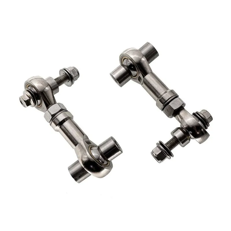 Crafted from heavy-duty stainless steel, these end links resist bending and breaking under demanding driving loads. The adjustable design lets you fine-tune sway bar stiffness to match your driving style, while spherical bearings ensure smooth articulation and long-lasting durability. This set replaces OEM part #20470FG000 and comes backed by a lifetime warranty for reliable performance.