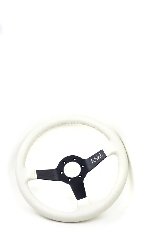 Special Offer Grip Royal Brute Ghost 350mm Deep Dish Steering Wheel w/ White Leather Grip, and White Stitching