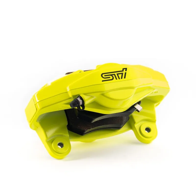 This caliper features a distinctive neon-yellow (Caliper Green) finish and is engineered as a right-hand side 2 pot caliper. It fits all 2008-2021 WRX and STI models at the front but requires STI bolts when installed on WRX models. Note that it is not compatible with WRX vehicles equipped with an electric e-brake. This listing includes the caliper only; hardware, lines, pads, and rotors are sold separately.