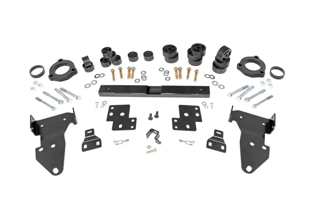 Gain enough ride height to run up to 265/70 R17 tires with this blend of two different Rough Country kits! This easy-to-install kit offers a big boost in ground clearance while retaining the factory look and feel. Each kit includes a bumper relocation system to ensure the bumper and body sit flush after lifting further preserving the nicer parts of the factory design.