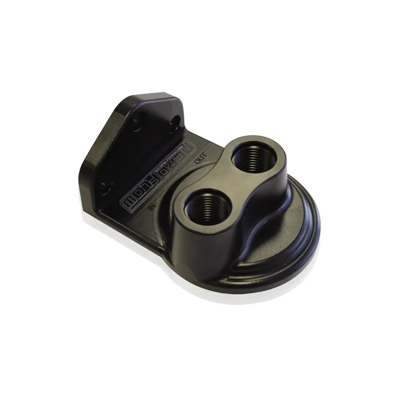 Move your oil filter to new location with Aeroflow Performance universal Billet Remote Oil Filter head. This is great for mounting an engine oil filter away from your engine, to make oil filter changes easier or where space is limited in the engine bay. Two labelled inlet and outlet -8AN ORB ports are provided for plumbing the engine oil to and from the oil filter remote mount. The main body is made from billet 6061 aluminium, then anodised black for great looks and corrosion resistance. Integrated one piece bracket which can be used to make installation easier in various universal applications.