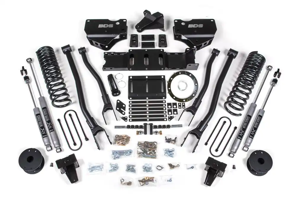 Raise your RAM 3500 gas powered truck equipped with factory rear air bags to new heights with this 5.5-inch radius arm lift kit from BDS Suspension. Designed to improve stance, performance, and capability, this kit includes everything necessary to set your truck up right with clearance for up to 37″ tires.
