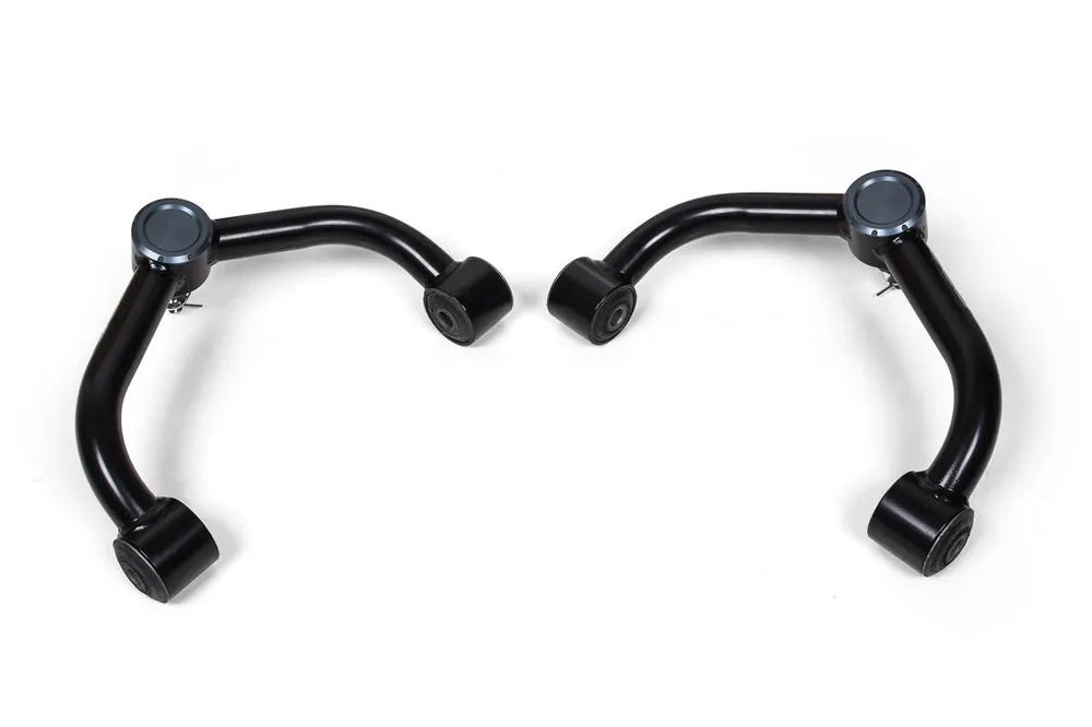 These UCAs can be used with BDS 5.5-inch lift kits and other lift and leveling kits on the market. The frame mounting ends feature durometer-specific rubber bushings and premium quality ball joints for smooth, quiet operation, and superior durability compared to arms featuring uniballs, poly bushings or heims.