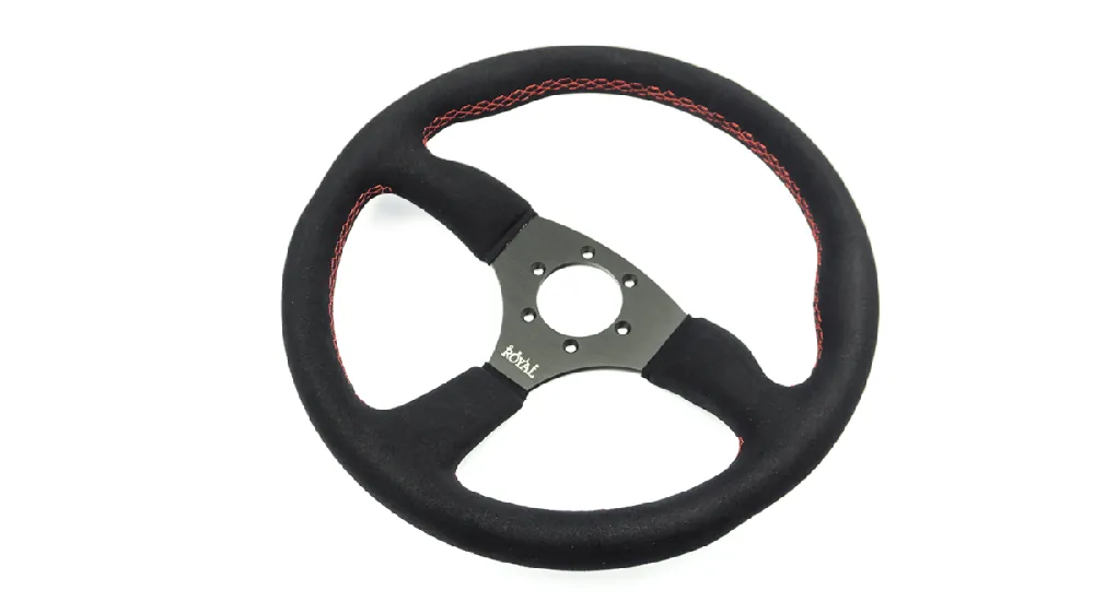 The Grip Royal Ace Steering Wheel is a premium, motorsport-inspired steering wheel designed for drivers who demand both performance and style. Featuring a classic three-spoke design, the Ace combines sleek aesthetics with a comfortable and ergonomic grip. Crafted from high-quality aluminum for durability and lightweight handling, it is wrapped in genuine suede and stitched together with red stitching, providing a superior feel and control. With a 350mm diameter, the Ace is ideal for precision driving, whether on the street or track.