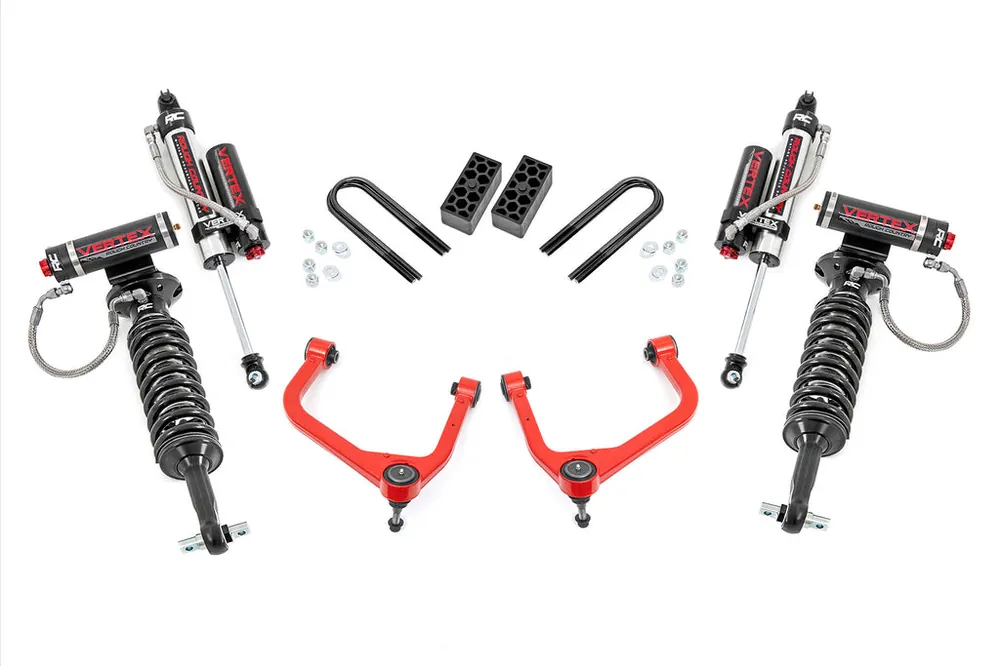 Explore New Heights: GM’s fourth-generation Silverado 1500 features an impressive all-new design that’s built from the ground up, with aggressive angles and head-turning stylings that fit in beautifully when transformed with Rough Country’s 3.5-inch Suspension Lift.Innovative Design and Construction: When changing a vehicle’s suspension, the key to preserving ride quality is keeping the geometry of all suspension components as close to their factory angles as possible. Rough Country’s 3.5in lift features a set of forged aluminum upper control arms to provide the correct suspension geometry in our most durable control arm to date! This perfect-height lift is a great choice for anyone who wants more than a simple level but doesn’t quite want the full height of a 6-inch option. This kit lifts and levels the front of the vehicle with the rear, offering enough increased ground clearance to run up to 295/55R20 tires with an improved, aggressive look. We didn’t want to limit you to one standard kit. Rough Country’s 3.5-inch kit is configurable with all the shock options that we offer. This allows you to choose which shock series you want! Ranging from our nitrogen-charged N3 shocks to our Vertex reservoir shocks the power to choose is in your hands.Installation: Requiring the use of a strut compressor to install, an estimated timeframe of 5-6 hours is recommended to complete this full installation. This full kit can be installed at home and can be completed efficiently and quickly!Limited Lifetime Replacement Warranty: Rough Country’s 3.5″ Suspension Lift Kit is backed with a limited lifetime replacement warranty towards manufacturer defects. As such, the product is protected from structural and workmanship damage after the date of purchase. With our industry-leading warranty give yourself peace of mind when using Rough Country’s Suspension products!